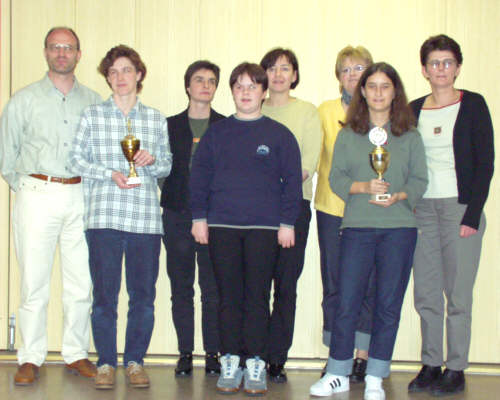 ihre Pokale. Ebenso wurden Martina Schief und Isabel Hauns als Vereinsmeisterinnen