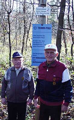 Friedrich Schäfer und Karl Merkel am Eingang des Trimm-Dich-Pfades