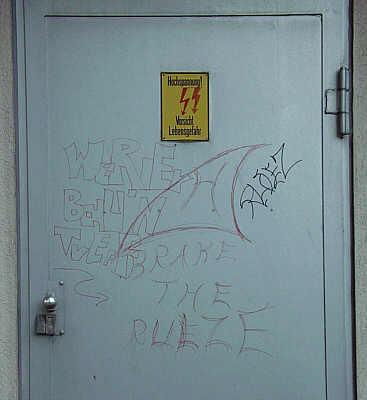 Harald Kratf (CDU) die Grafities bei der Freilufthalle, bei denen u.A.