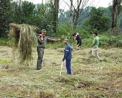 rechten und trugen das Heu zu Schooren zusammen, um es dann mit der Heugabel