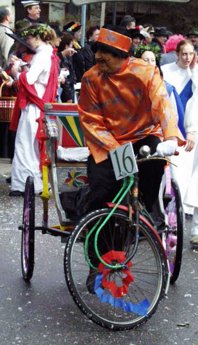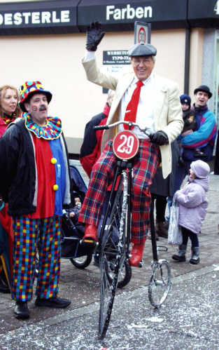 zirkelte Bürgermeister Otto Himpel auf dem Hochrad durch den Gaudiwurm.