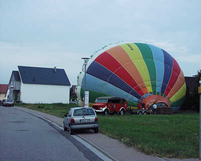 Ballonfahrt ein. Auf den unbebauten Grundstücken neben