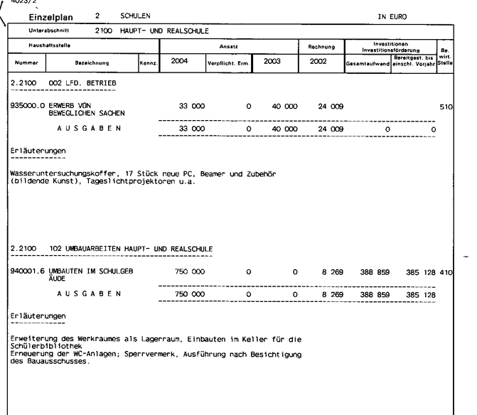 die Einrichtung einer Ganztagesschule zu machen. Im Vermögenshaushalt