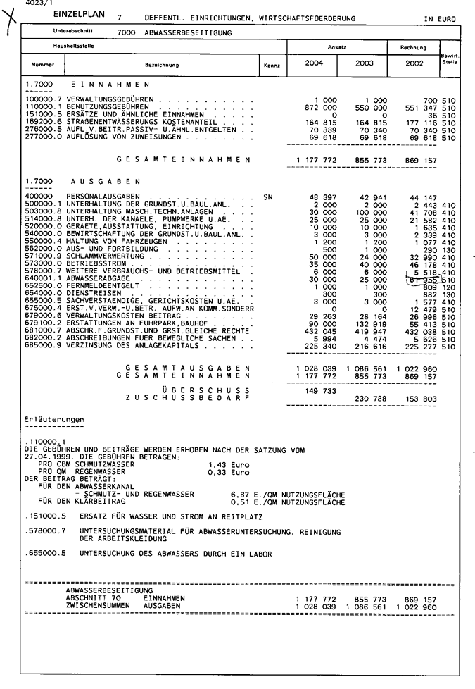 Bei den Planungsgeldern für einen Generalentwässerungsplan