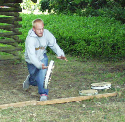 musste eine zehn Zenitmeter starke Baumscheibe in iner dem Kegeln ähnlichen