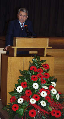 Bürgermeister Werler unter dem Beifall der Gäste seine
