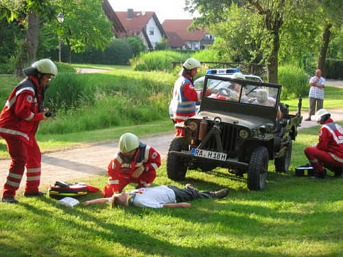 eines simulierten Autounfalls vor. Vom „Intubieren“ über das
