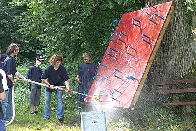 im Umgang mit Schläuchen, Strahlrohren, Wasser und Bällen