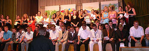 hat dann die Absolventen in 5er Gruppen zur Zeugnisübergabe,