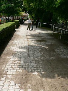 der Sand ebenfalls, aber den Roßbollen hinter den Drehkreuzen,
