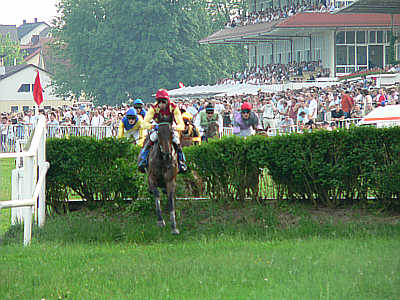 auf dem Weg zum Sieg im Iffezheimer Jagdrennen.