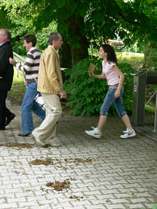 durch welche die Gäste mit nicht auf den Boden gehefteten Blick