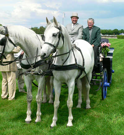 legt Albert Schlageter (rechts) die Zügel der Starterkutsche