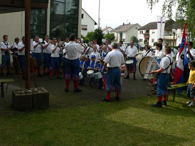 Fanfarenzug zu den Feierenden, die er mit flotten Weisen unterhielt.