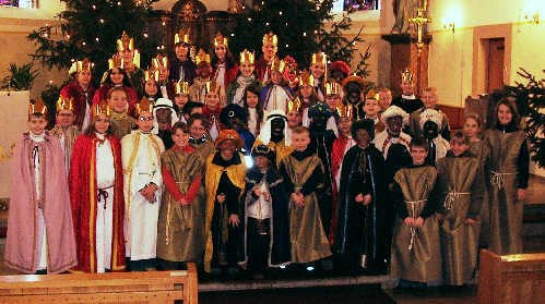 und Ministranten in 12 Gruppen als „Heilige Drei Könige“