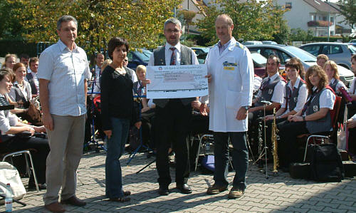 des Musikvereins, Manfred Burkart, einen Spendenscheck