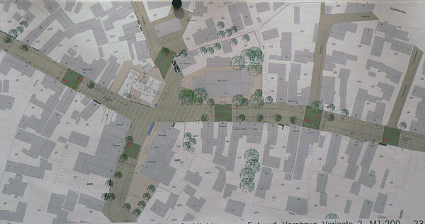 den Verzicht auf Bäume in der Hauptstraße. Dies rief