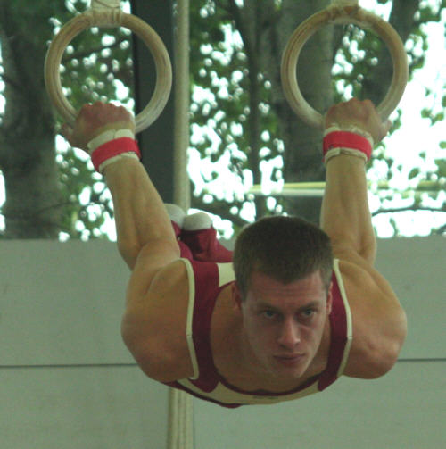 der gut aufgelegte Tobias Mauck an Seitpferd und Ringen.
