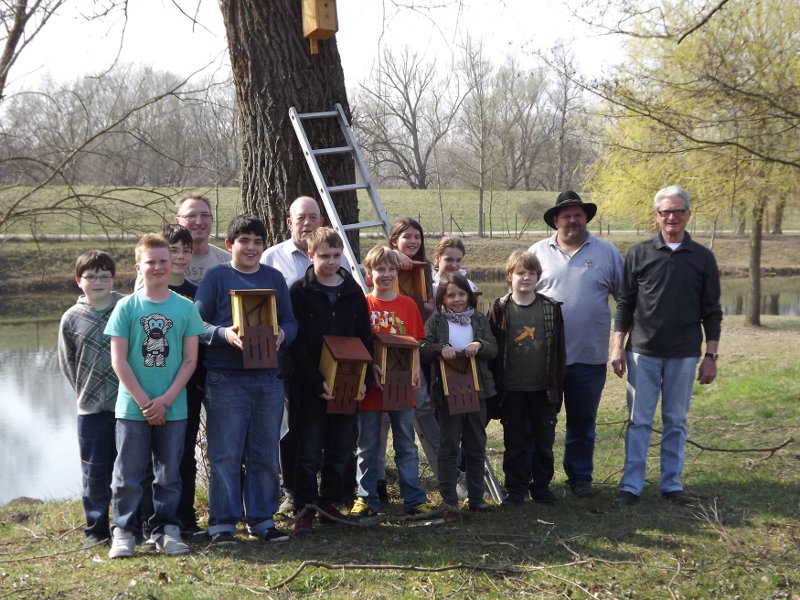 Frau Susanne Schlindwein und Holger Deutschmann, Freizeitbetreuer am Päda, hatten dieses Projekt angeschoben und sind auch fast schon alte Bekannte am Quelloch. Nachdem sie in 2011 schon mehrere Fledermauskästen installierten, durften Sie jetzt zum zweiten Mal Gast der AKI sein. Die Kinder suchten sich die schönsten Bäume rund um den idyllischen See des Vereinsgeländes aus und schraubten die Kästen dann an diesen fest. „Noch ein paar trockene Zweige rein bevor der Deckel zugeschoben wird und fertig ist die Schmetterlingsbehausung“. Bleibt zu hoffen dass die Kästen auch gut angenommen werden. Ab und an wird da die Jugendgruppe des Angelvereins, die tatkräftig zur Seite stand, ein Auge drauf werfen und ihre Freunde vom Pädagogium auf dem Laufenden halten.