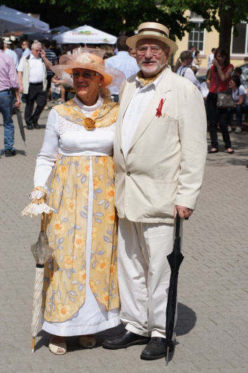 Einige Schauspieler der Volksschauspiel Ötigheim brachten mit ihren Kostümen aus "My Faur Lady" einen Hauch von Ascot ins Badische.