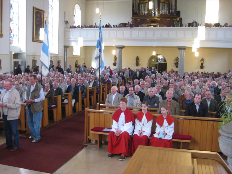 In imposanter Ehrfurcht erklangen aus 600 Männerkehlen alle Strophen des „Großer Gott, wir loben dich“ als Lied am Ende des Gottesdienstes. Die Überleitung von unserer Pfarrkirche hinaus die Welt war ein sängerischer Glanzpunkt dieser Männerwallfahrt: Das stimmgewaltige Badner Lied wurde von unserem Organisten Gerhard Walter bravourös mit unserer Stieffel-Orgel (erbaut 1834) in Szene gesetzt.