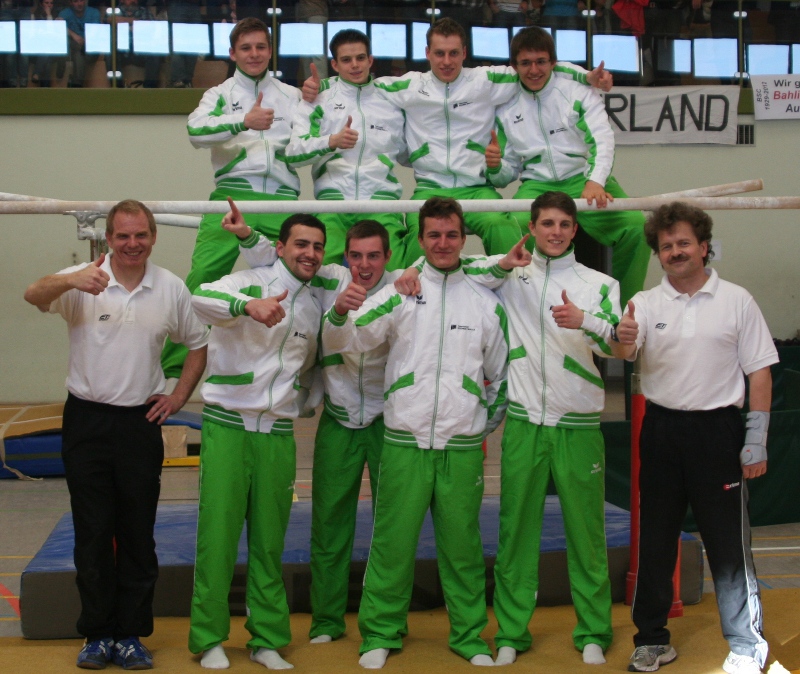 Das Turnteam konnte mit den Iffezheimern Selim Harmanbasi, Jan Anselm, Tobias Mauck und Jan Ruf sowie Timon Dolmetsch, Benjamin Hiemer, Vincent Hiemer und Stefan Jochum vom TV Kieselbronn erneut in Bestbesetzung antreten. Alle Akteure präsentierten sich von Beginn an in bestechender Form und absolvierten ihre Übungen nahezu fehlerfrei. Lediglich an Boden und Barren wurden sie von den ebenfalls hervorragend aufgelegten Heidelbergern knapp übertrumpft, doch ansonsten hatten sie in jeder Disziplin die Nase vorn. Tobias Mauck war am Seitpferd (12,40) nicht zu schlagen und Jan Anselm erzielte mit einem tadellos gesprungenen Tsukahara sogar die Tageshöchstnote (13,95). Vincent Hiemer dominierte die Wertungen an Ringen (12,40) und Reck (12,80) und gewann mit drei Punkten Vorsprung souverän die Einzelwertung (76,90).