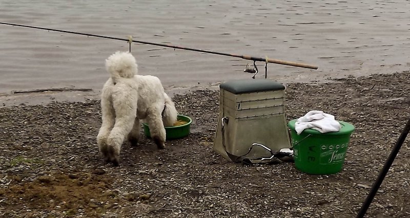 Übers Umsatteln sollte sich mal unser geschätzter Kamerad Eichhorst Gedanken machen. Fische konnte sein Futter partout nicht locken. Ein daher spazierender Hund dagegen fand es dafür umso unwiderstehlicher und war denn auch nur schwer von seinem Frauchen vom Futtereimer zu trennen. Schade Wolfgang, Hunde zählen halt nun mal nicht mit in die Wertung. Sonst wärst aber mal so was von dabei gewesen. Probier es doch mal mit Hundefutter? Vielleicht klappt’s dann auch mit dem Fisch…