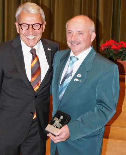 mußte, um die Vereinsziele zu erreichen. „ Frage immer die um Hilfe, die bereits viel Arbeit haben. Die helfen Dir.“, sei die Leitlinie, die er von ihm gelernt habe.Der Männergesangverein habe bei Karlheinz Schäfer immer im Vordergrund gestanden. Für sein ehrenamtliches Engagement, das sich auch in seiner über 30-jährigen Gemeinderatszugehörigkeit zeige,erhielt Karlheinz Schäfer den Iffezheimer Reiter, die Replik einer römischen Statue, die für besondere Verdienste um die Gemeinschaft verliehen wird.