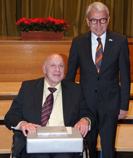 Zwei Vertretern der musischen Künste wurden für ihr langjähriges Wirken um die Sangeskunst geehrt. Am 27. März 1980 habe sich Herbert Szymanski in Knickerbockern den Sängern im Probedirigat gestellt und entgegen seines Anspruches, nie länger als fünf Jahre einen Chor zu dirigieren, 33 Jahre den Taktstock beim Männergesangverein Liederkranz geschwungen, so Bürgermeister Peter Werler in seiner Laudatio. Er habe dem Chor in diesen drei Jahrzehnten neue Impulse gegeben,