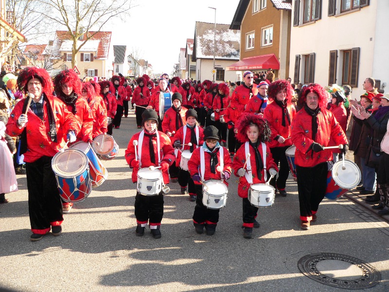 Ein Gaudiwurm mit zusammen 47 Häs-, Musik- und Fußgruppen, angefeuert vom Fanfarenzug Iffezheim und den Musikvereinen aus Iffezheim, Sandweier und Söllingen sowie den heulenden Guggemusikern, schlängelte sich durch Hunderte von Zuschauern, die die Iffezheimer Hauptstraße säumten.
