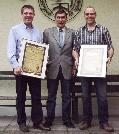 Einen besonderen Akt konnte Friedhelm an diesem Tag auch noch vollziehen. Er freute sich zwei unserer Mitglieder in den Rang der Ehrenmitglieder erheben zu dürfen. Killian Leuchtner und Jürgen Himmel, beide noch junge Hupfer aber schon seit ihrer Kindheit dabei. Sie wurden für 40- jährige Vereinstreue geehrt. Herzlichen Glückwunsch euch beiden.