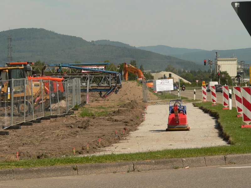 Ein Neubaugebiet bietet immer wieder etwas Neues, so auch das Gebiet „Nördlich der Hauptstraße“ in Iffezheim. Deutlich zeichnen sich am Kreisel die Vorboten des künftigen Radweges nördlich der Badener Straße ab, auf den künftig der passionierte Iffezheim Radler vom Radweg entlang der B36 schwungvoll Richtung Heimat einbiegen kann und sich nicht mehr wie heute durch die vor dem Ampel wartenden Autos durchschlängeln muß. Leider bleibt es vorerst bei der Vorfreude, denn