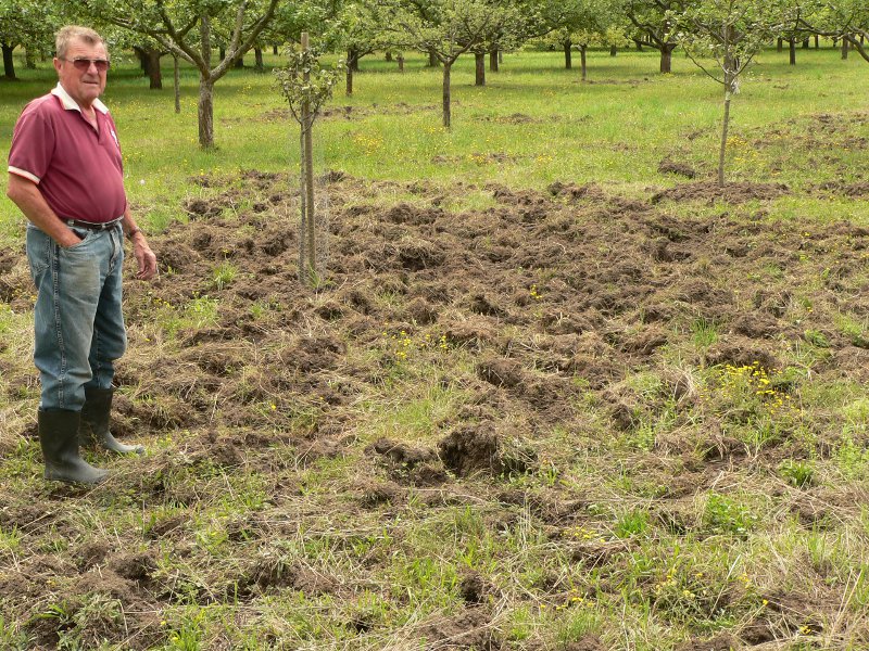 Rüdiger Nold, Vorstand des Obst- und Gartenbauvereines, bestätigte, daß sich seit drei Jahren das Borstenvieh durch den Boden unter den Bäumen wühle. So schlimm wie dieses Jahr sei es aber bisher nie gewesen.