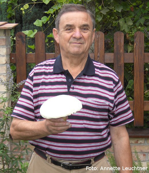 Da staunte Manfred Leuchtner nicht schlecht, als er eines Nachmittags auf seiner Streuobstwiese in der Nähe des Iffezheimer Sportplatzes etwas Weißes durch das – dank des Regens – kräftig grün schimmernde Gras leuchten sah. Unter einem Boskopbaum hatte sich ein Champignon den Weg ans Licht gebahnt. Aber nicht nur irgendein Champignon lugte zwischen den Halmen hervor: Fast achtzehn Zentimeter weit spannte der Pilz seinen Schirm auf. Stolze 194 Gramm zeigte die heimische Küchenwaage an, als Manfred Leuchtner das Prachtexemplar auf die Waagschale legte.