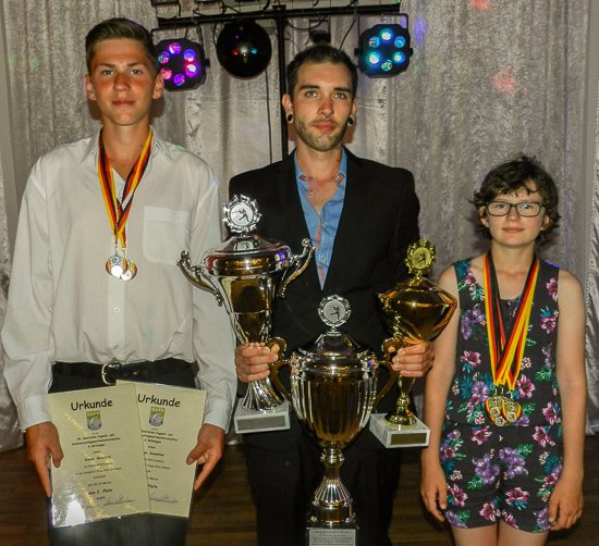 Markus Anthöfer, an ihm gab es in diesem Jahr kein Vorbeikommen. Silber in Fliege Ziel, Silber in Fliege Weit Einhand, Silber in Gewicht Präzision, Gold in Gewicht Einhand Weit, Gold in Fliege Zweihand Weit und Silber in Gewicht Zweihand Weit. Somit errang er sich in der Juniorenklasse den Deutschen Meistertitel im 5- Kampf sowie im 7- Kampf den wichtigsten Titeln auf nationaler Ebene überhaupt. So platzt denn auch Coach Andreas Kirchner fast vor Stolz und meinte, "Vier Deutsche Meistertitel und vier Deutsche Vizemeistertitel und den Sachsen Anhalter Christopher Ullrich im 5- und 7- Kampf geschlagen, einfach nur genial! Aber auch die jungen Werfer. Zum ersten mal dabei und absolut im Soll. Da zeigt sich dass das tägliche Training im Vorfeld einiges brachte. Und mit Ramon scheint Konkurrenz für Markus Anthöfer heranzuwachsen."
