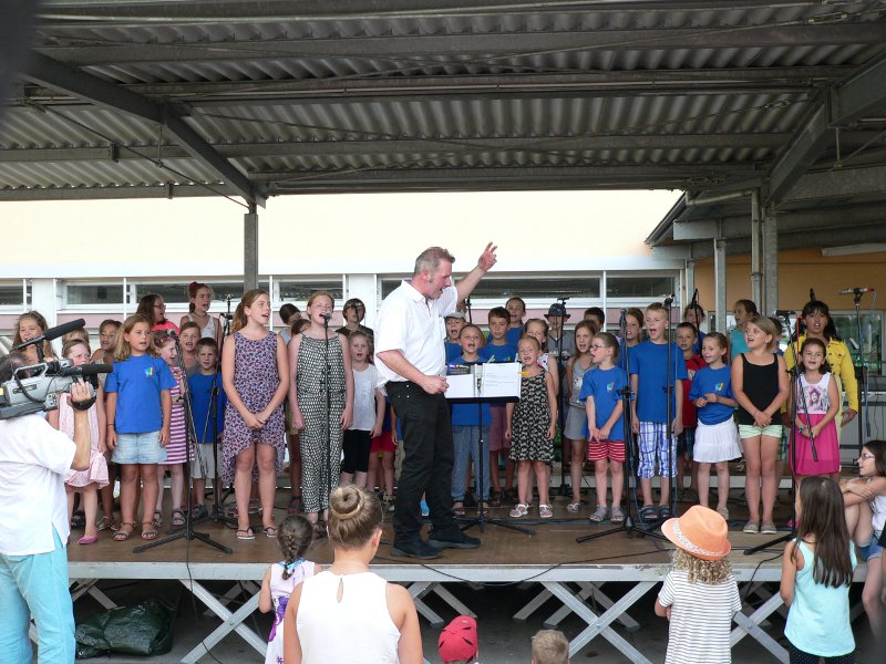 Nach dem morgendlichen Eröffnungsgottesdienst wurde dann in der Tat sehr viel gesungen und musiziert. Auf der dreiteiligen, knapp einhundert Quadratmeter großen Bühne ging es Schlag auf Schlag. Die Iffezheimer Parforcehorn Bläser eröffneten den bunten Reigen mit zahlreichen, von Allegro Event unterstützten Bandprojekten und Solisten der Musikschule „Allegro“, sowie dem Kirchenchor und den jungen Tänzern des Turnvereins Iffezheim.