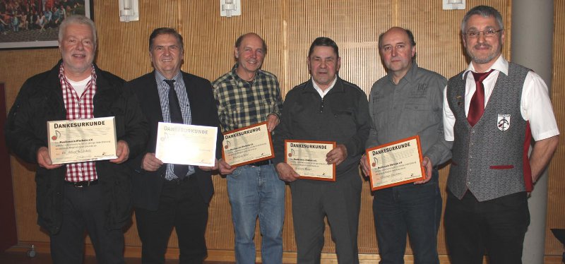 Für ihre 20-jährige Treue zum Verein ehrte Burkart Dr. Alfred Schäufele und Andreas Merkel; für 30 Jahre Alwin Merkel, Ursula und Christian Leuchtner, Peter Leuchtner, Reinhard Walter und Anita Ziller. Ebenso bedankte sich Manfred Burkart bei allen ausscheidenden Vorstandsmitgliedern und ernannte Claudia Kronimus und Peter Merkel zu Ehrenmitgliedern.