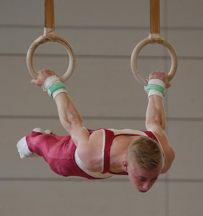 Vom zentralen Kern der Gästemannschaft musste Lukas Austen verletzungsbedingt pausieren, folglich ruhten die Hoffnungen diesmal auf Dominik Adler, Michael Müller, Cornelius Müller, Fabian Rauber, Jan Flöck, Maik Seiberling sowie den Trainern Patrick Hauns und Manuel Müller. Zu Beginn im Bodenturnen hatte Iffezheim noch ganz knapp das Nachsehen, obwohl Michael Müller mit einer hochwertigen und sehr sauberen Kür schon früh die Tageshöchstnote 12,8 erzielte. Doch kurz darauf war der Rückstand fast wieder ausgeglichen, nachdem die Gastgeber an den Pauschen eine etwas höhere Fehlerquote offenbarten und minimal den Kürzeren zogen. Die Ringewertung ging dagegen recht eindeutig an Obergrombach, wobei Lukas Austen den Gästen in dieser Disziplin am meisten fehlte und womöglich sogar ausschlaggebend für den Punktverlust war. Nach der Pause wendeten sie aber das Blatt und gingen dank einer überlegenen Vorstellung am Sprung erstmals in Führung. Erneut machten die tadellosen gestreckten Tsukaharas von Michael und Cornelius Müller den Unterschied aus, zumal ihre Gegner insgesamt recht wackelig agierten und folglich auch noch die höheren Abzüge kassierten. Am Barren präsentierten sich beide Teams in ähnlich guter Verfassung, doch die Iffezheimer hatten allein schon aufgrund der höheren Ausgangswerte abermals die Nase vorne. Obwohl sie schließlich mit über zwei Punkten Vorsprung ans Reck gingen, war der Wettkampf bis zum Ende völlig offen. Die Hausherren gaben sich nämlich keineswegs geschlagen und legten zunächst gut vor. Doch nachdem sie für ihre letzten beiden Übungen wegen fehlender Teile mit Penaltys bedacht wurden, konnten sie die nun überlegenen Sieger nicht mehr gefährden.