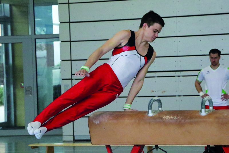 Für Iffezheim turnten Jan Anselm, Selim Harmanbasi, Jan Ruf, Tobias Mauck sowie Michael und Cornelius Müller. Der Auftakt am Boden war angesichts ihrer fast fehlerfreien Übungen durchaus vielsprechend, dennoch behielten die Gäste knapp die Oberhand und gingen mit 5:0 in Führung. Am Seitpferd musste Teamchef Steve Woitalla verletzungsbedingt ausgerechnet auf den normalerweise sehr sicheren Stammturner Jan Anselm verzichten, daher konnte lediglich Tobias Mauck sein Duell für sich entscheiden. Denkbar knapp ging es an den Ringen zu, doch mithilfe einer geschickten Taktik gelang den Gastgebern der erste Gerätesieg. Nach der Pause bliesen sie beim Rückstand von 6:21 zur Aufholjagd und holten sich dank 4 gestreckten Tsukaharas verdient mit 9:2 die Sprungwertung. Hochmotiviert traten die Iffezheimer am Barren an, doch nun wurden sie vom Kampfgericht ungewöhnlich hart rangenommen und mussten den TG Hegau-Bodensee weiter ziehen lassen. Zum Teil wunderten sich selbst die Gäste über die hohen Abzüge bei ihren sehr sauber agierenden Gegnern. Sichtlich geknickt kamen die Gastgeber zum Reck, wo lediglich Michael Müller mit den letzten 5 Scorepoints einen Erfolg verbuchen konnte. Dadurch landete er gemeinsam mit seinem Kontrahenten Sascha Garni und 8 Scorepoints auf dem zweiten Platz der Einzelwertung, Leon Fuchs (10) wurde Topscorer des Tages.