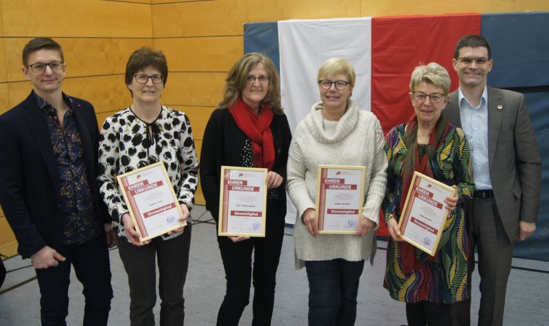 Für ihre langjährige Treue zum Verein wurden Edith Banzhaf, Gudrun Greß, Nora Huber-Bender, Regina Oesterle, Klara Hilser, Daniela Manara, Sabine Merkel sowie Michael Oesterle zu Ehrenmitgliedern ernannt. Für seine zehnjährige Tätigkeit als Übungsleiter wurde Manuel Müller mit der silbernen Vereinsnadel ausgezeichnet. Vanessa Mayer erhielt die silberne Ehrennadel des Turngaus für ihre über zwanzig Jahre währende Tätigkeit als Übungsleiterin.