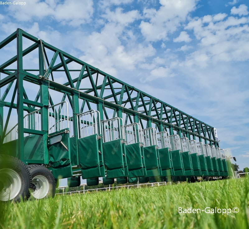 Baden Galopp, der Betreiber der Rennbahn in Baden-Baden | Iffezheim freut sich mitteilen zu können, dass rechtzeitig zu der am 27.08. beginnenden Grossen Woche die neue Startmaschine angekommen ist. Sie wurde in Einzelteilen geliefert und dann in 2 Tagen vor Ort zusammengebaut. „Damit verfügt Baden Galopp über die modernste und neueste Startmaschine in ganz Deutschland. Diese weist gegenüber ihrer Vorgängerin etliche Vorzüge auf. Vor allem ist sie dank vieler Details pferdefreundlicher“, erläutert Stephan Buchner, geschäftsführender Gesellschafter.
