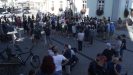 Gut 200 Freunde, Unterstützer und Neugierige fanden sich am Samstagmorgen vor dem Rathaus ein, um die neun Läufer beim Start zum 300 – Kilometerlauf anzufeuern und zu unterstützen. Bei Freibier, Kaffee und Kuchen herrschte Party – Stimmung unter den Zuschauern, während sich bei den Athleten eine positive Anspannung bemerkbar machte und alle froh waren, daß es endlich losgeht.