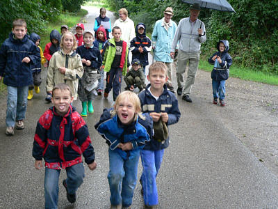 Die Rasselbande auf dem Weg zum Geläuf...