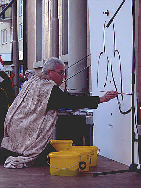 In lichte Höhen sollt er sich schrauben, der Narrenbrunnen an des Rathaus' Wand.