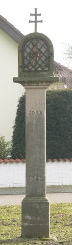 Schwärme von Schnaken fielen über den Unglücklichen her und Ameisen krochen ihm in Mund und Nase. In seiner Not flehte er zu Gott und schwor für seine Rettung an dieser Stelle einen Bildstock zu errichten. Ein Handwerksbursche kam bald darauf des Wegs und befreite Kist aus seiner mißlichen Lage. Josef Kist hielt Wort und errichte den als „'s Bildsteggl“ bekannten Heiligenstock mit eingravierter Jahreszahl 1750 und den Initialen „JOSK“ an der Eiche. Die Hanfäcker sind mittlerweile bebaut. Das „Bildsteggl“ steht jedoch noch immer an seinem ursprünglichen Platz. Neben ihm mündet die Kincsemstraße in die Hügelsheimer Straße.