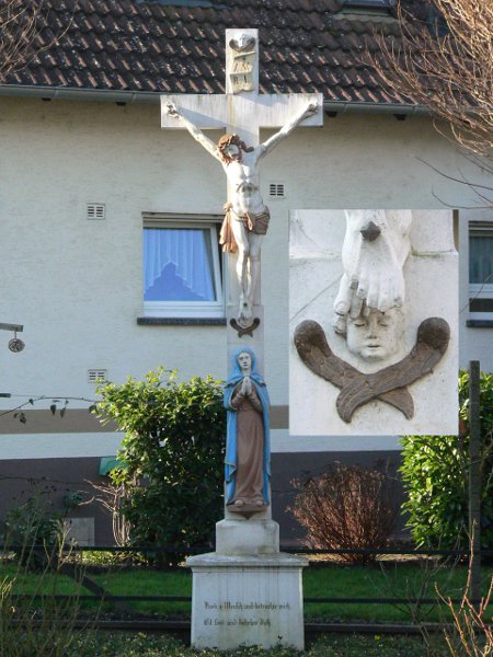 abgeschlagene Zehe wieder an den Fuß zu kleben. Jahrzehnte später soll der inzwischen nach Amerika ausgewanderte Müller in einem Brief an Bürgermeister Severin Schäfer seinen Frevel eingestanden haben und weiterhin berichten haben, daß ihm seine große Zehe abgefault sei. Diesen Brief verweist der Vorsitzende des Heimatvereines, Siegbert Heier, in das Reich der Fabeln. Das Wegkreuz wurde mit Beginn der Arbeiten am „Westwall“ abgebaut, da die Straße Richtung Rhein ('s Ringsträßl) verbreitert wurde. Es wurde an die