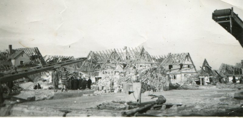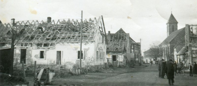 Im Gedächtnis der älteren Generation ist sie immer noch präsent und in der Ortsmitte zeugen die Häuser im Stil der Fünfziger Jahren noch heute von der Schreckensnacht, als rings um den Schnittpunkt Hauptstraße / Rennbahnstraße Alles in Schutt und Asche sank.